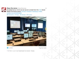 The document outlines a multi-faceted communications strategy centered around the Kansas City experience, utilizing social media monitoring and outreach through platforms like Tumblr and Twitter. It details the execution of the strategy, including engagement statistics, personalized responses, and overall positive sentiment towards the #kc initiative. Key lessons learned emphasize the importance of scalability, responsiveness, and effective content management.
