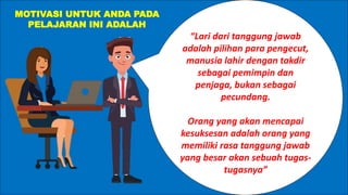 Dokumen ini membahas tentang penyelenggaraan rapat, termasuk unsur-unsur, jenis-jenis, dan tipe peserta rapat. Terdapat juga tujuan pembelajaran terkait perencanaan rapat dan tata tertib yang harus diikuti. Penekanan pada tanggung jawab dalam menjalankan tugas sebagai kunci untuk mencapai kesuksesan juga disampaikan.