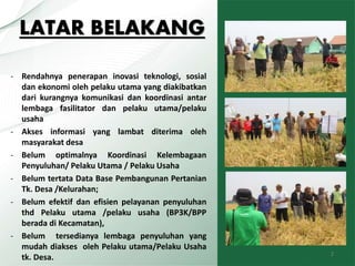Dokumen tersebut membahas kebijakan pelaksanaan fasilitasi Pos Penyuluhan Desa (Posluhdes) di Jawa Barat, mencakup latar belakang, tujuan, dasar hukum, strategi, proses pembentukan, organisasi, sumber daya manusia pendukung, hubungan kerja, layanan, uji coba penerapan teknologi informasi, kondisi Posluhdes, implementasi program dan kegiatan, serta roadmap pengembangan Posluhdes di Jawa Barat."