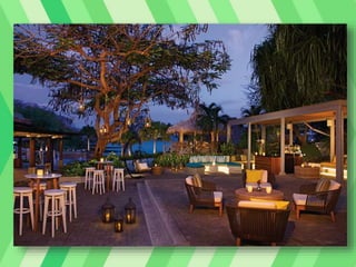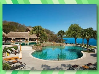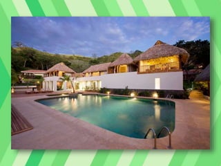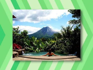 This document provides information about honeymoon destinations and activities in Costa Rica, specifically the Arenal Volcano Region. It describes the weather patterns and best times to visit Costa Rica, highlights of attractions and activities in the Arenal area like zip lining, hot springs, and hiking, and details the 5-star Springs Resort and Spa located near Arenal Volcano with its pools, dining options, and views of the active volcano.