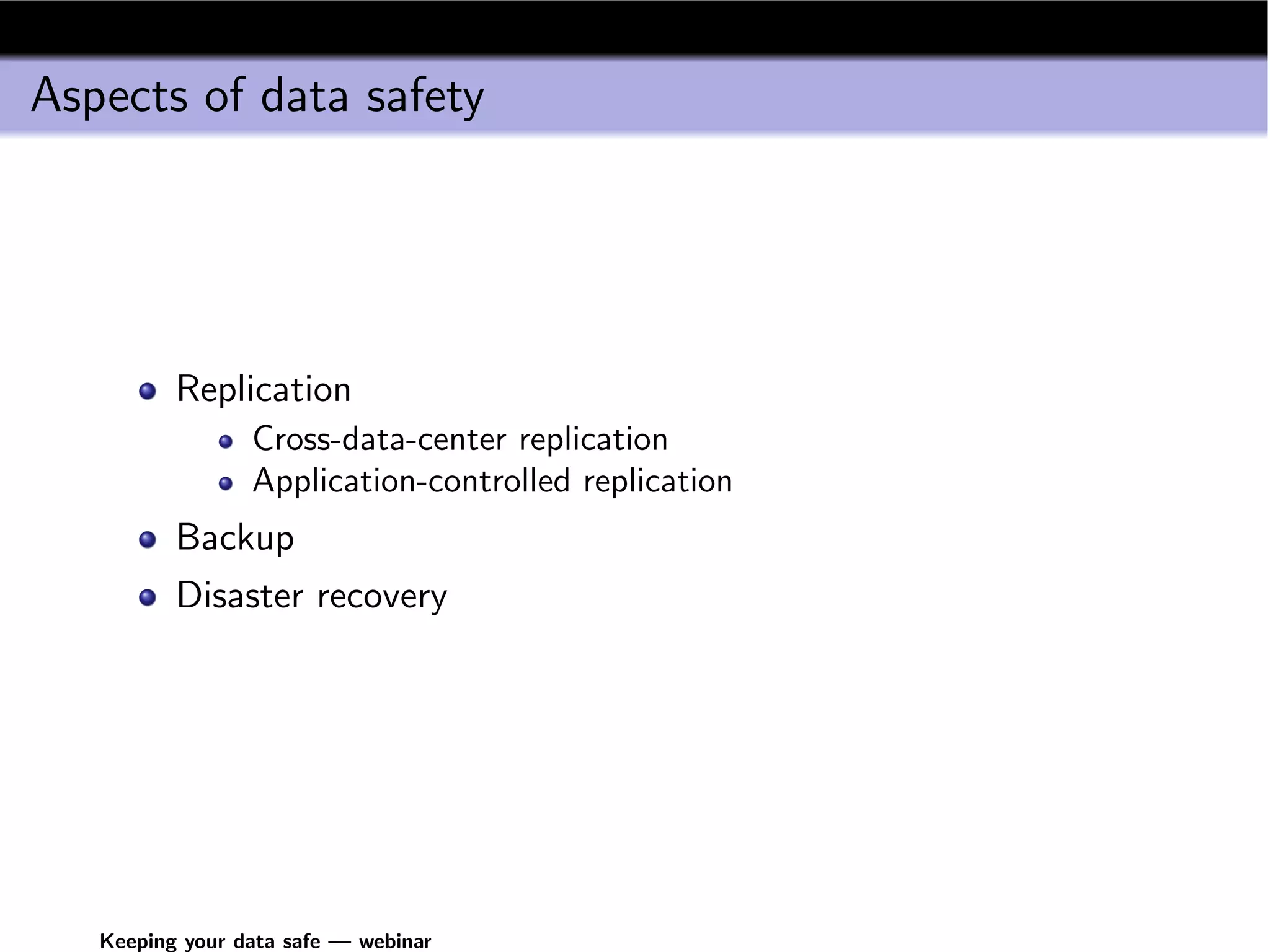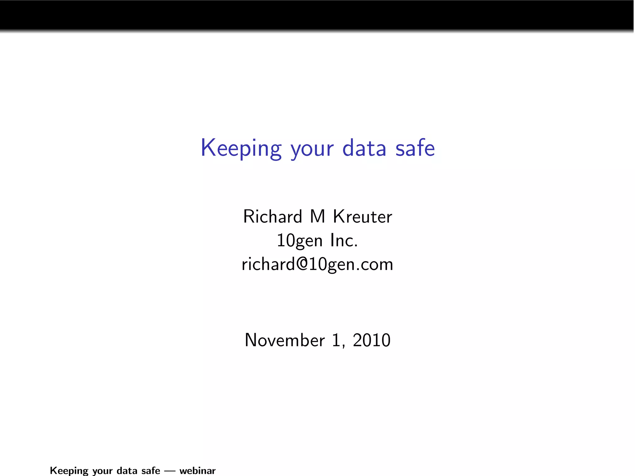 The document discusses various aspects of keeping MongoDB data safe, including replication, backups, and disaster recovery. It describes how MongoDB supports automatic replication across data centers for failover and horizontal scaling. It also discusses using MongoDB tools like mongodump and mongoexport for backups, as well as taking filesystem snapshots. For disaster recovery, it recommends repairing hardware, replaying oplogs if possible, or initializing from backups otherwise.