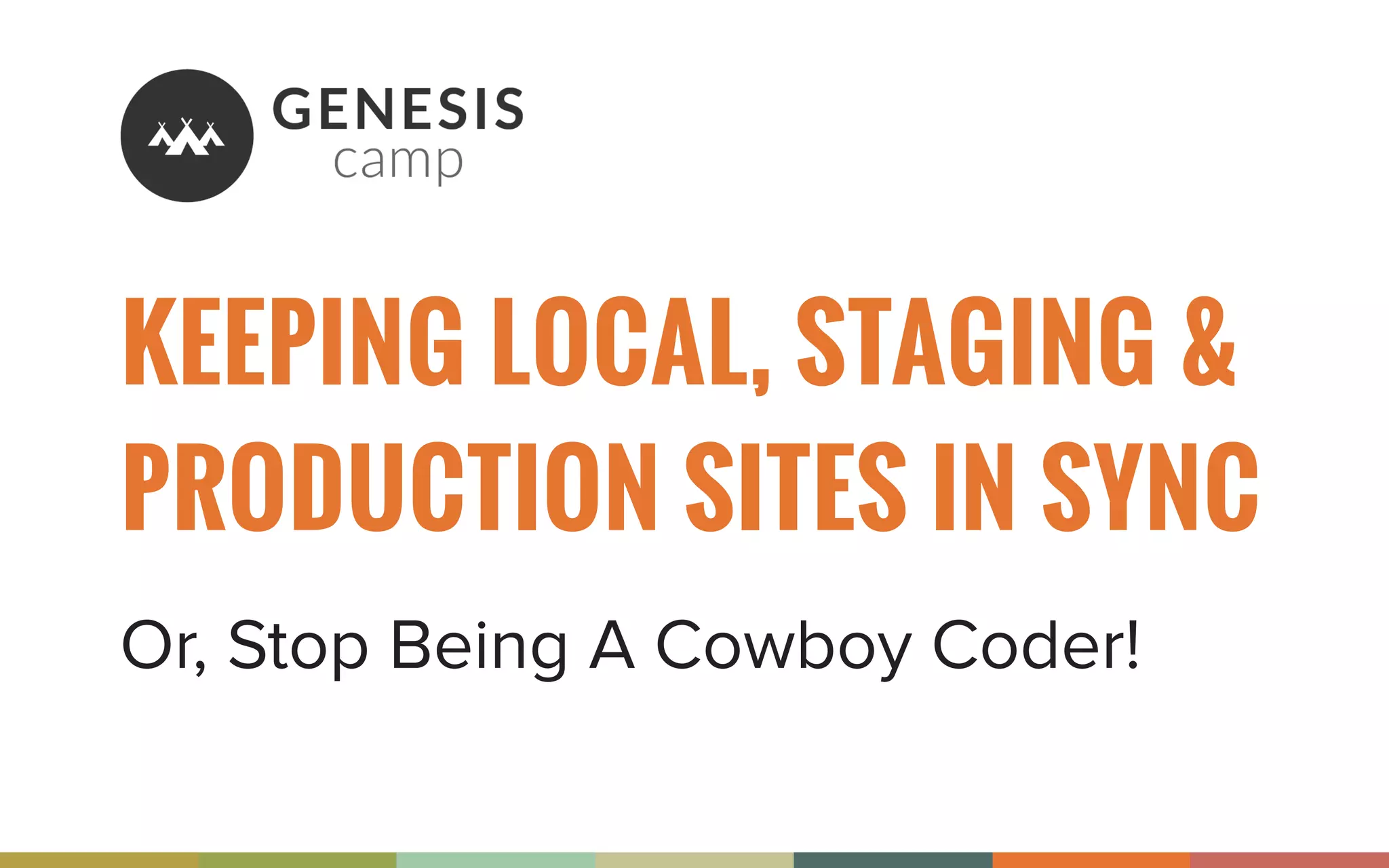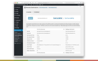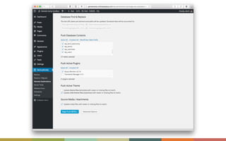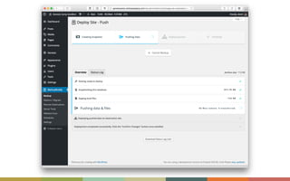 The document discusses the importance of maintaining synchronization between local, staging, and production sites to avoid the risks of direct edits on live sites. It outlines best practices for creating staging and local development sites, offers tools for syncing changes, and provides tips for successful deployment. The author emphasizes the need for backups and careful management of database changes during the deployment process.