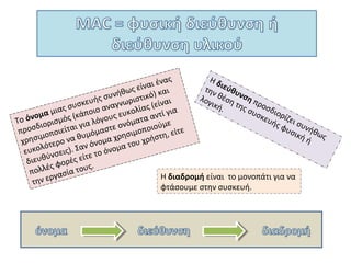 IP διευθύνσεις, μία για κάθε δίκτυο στο οποίο συνδέεται.