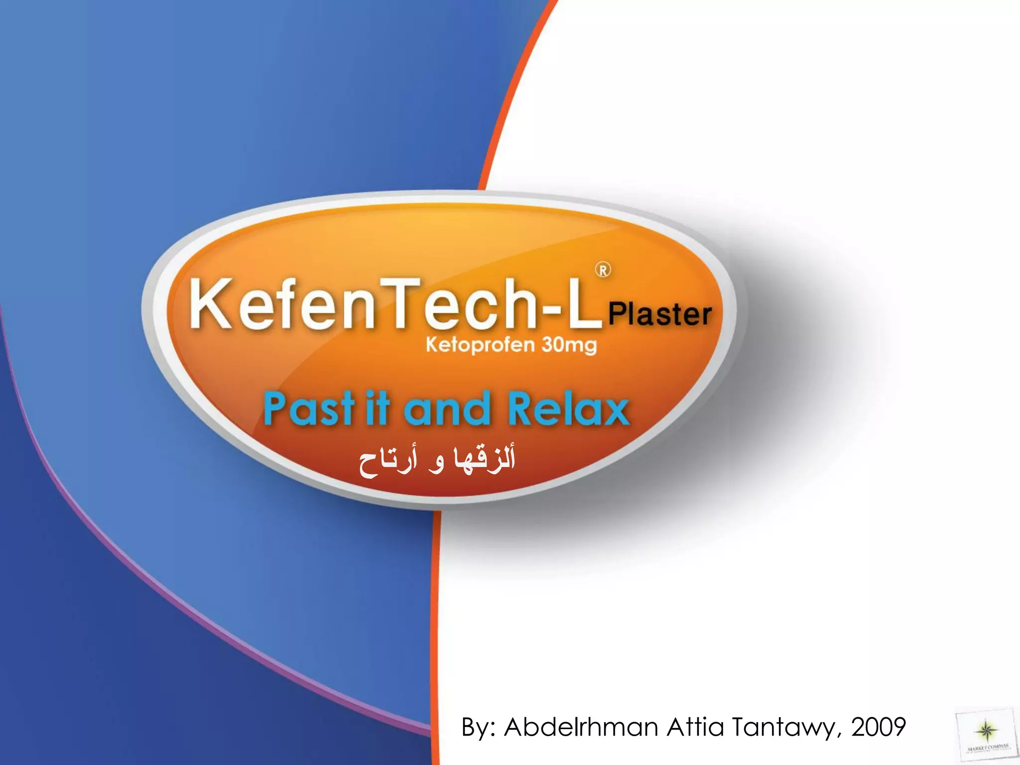 Kefentech is introducing a new transdermal pain relief patch for the Egyptian market. The document discusses Kefentech's objectives to become the market leader and increase brand awareness, especially among pharmacists and customers. It analyzes Kefentech's strengths, weaknesses, opportunities, and threats. The target audience includes pharmacists, doctors, the elderly, athletes, pregnant women, and fasting people. Kefentech will position itself as the long-lasting pain killer and market leader. Promotion strategies include radio advertisements, print media, and direct marketing. Five radio advertisement scripts are proposed focusing on different audiences and occasions like Ramadan.
