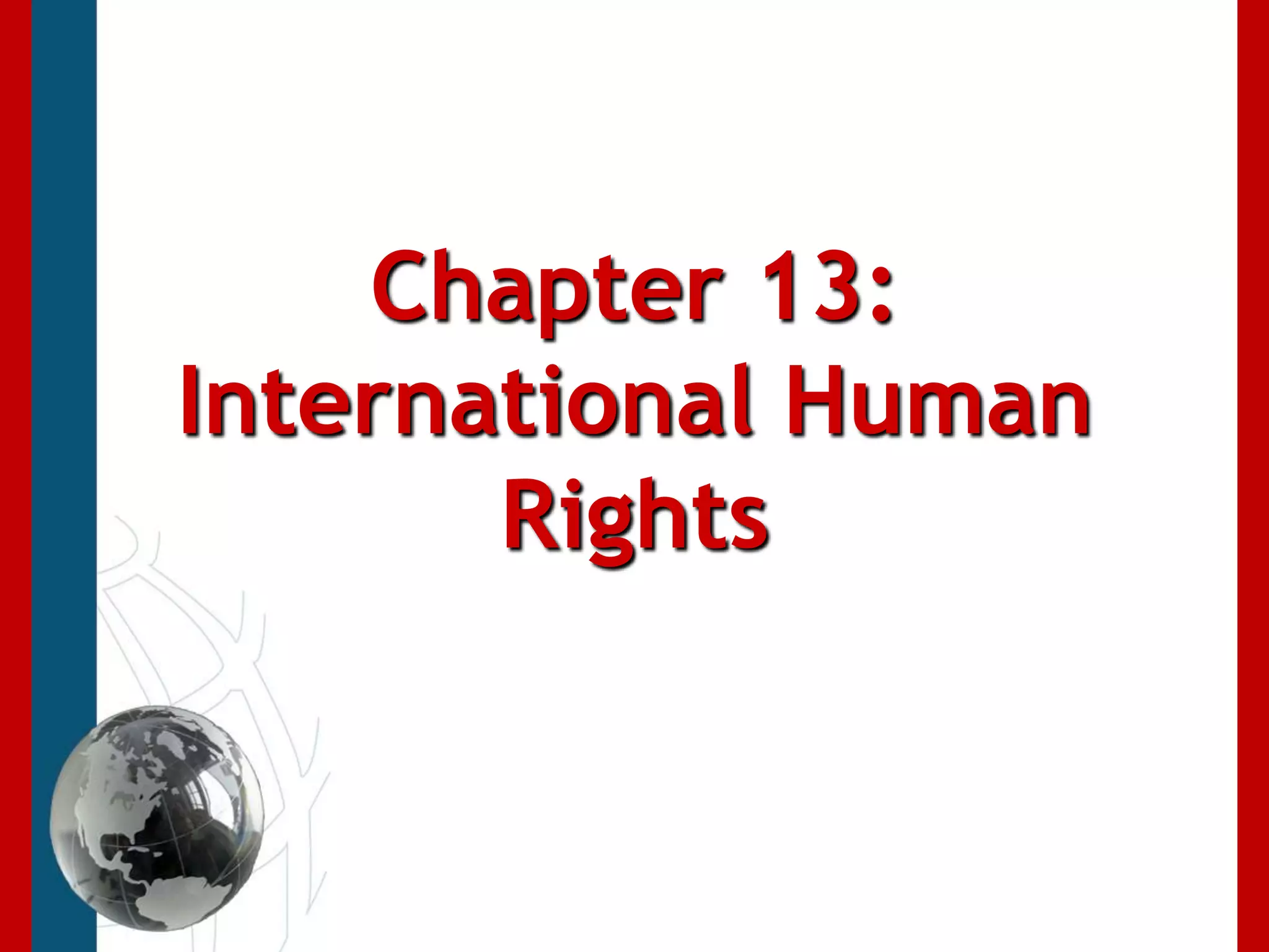 This document discusses concepts related to human rights such as ethics, morality, civil society, and sanctions. It then examines the human condition globally, particularly in the global south, using metrics like poverty rates, life expectancy, and access to resources. It also discusses measures of human development through indices that evaluate factors like income, education, and health. Overall, it provides an overview of the status of human rights internationally, challenges faced in different regions, and approaches to protecting human rights globally.