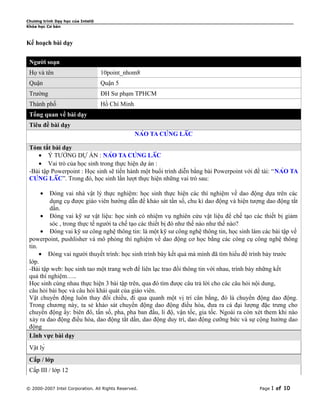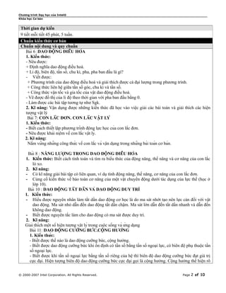 Tài liệu mô tả kế hoạch dạy học cho khóa học vật lý cơ bản, tập trung vào dao động cơ học và các khái niệm liên quan như tần số, chu kỳ, và biên độ. Học sinh sẽ thực hiện các dự án nhóm, bao gồm thí nghiệm và báo cáo bằng PowerPoint để tìm hiểu sâu về dao động điều hòa, con lắc và năng lượng trong dao động. Ngoài ra, tài liệu cũng nêu rõ mục tiêu, kỹ năng cần đạt và quá trình đánh giá trong việc giảng dạy.