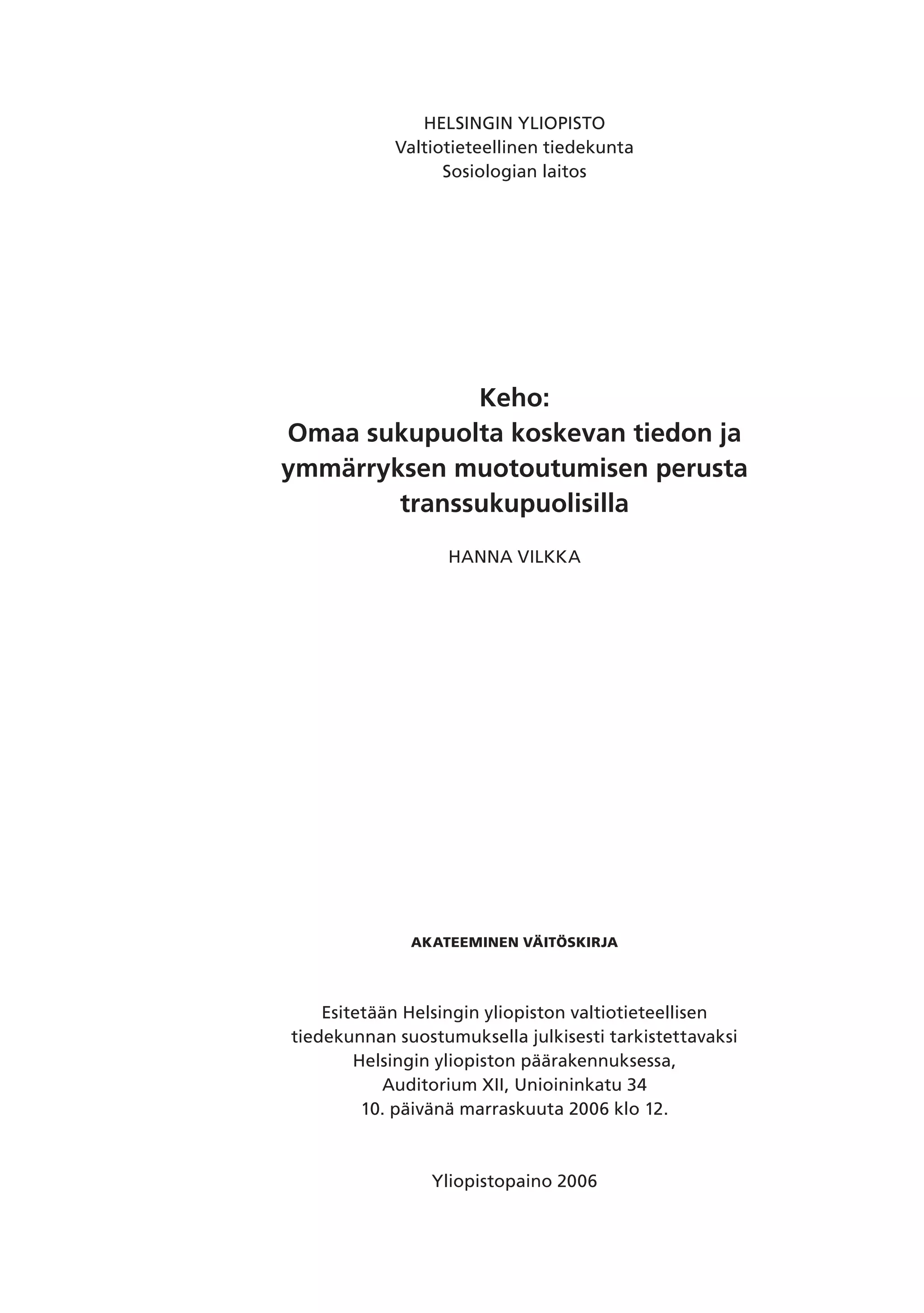 aikana. Tutkimustani ovat tukeneet stipendein ja apurahoin Seksuaalinen