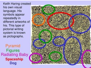 Keith Haring was born in 1958 in Reading, Pennsylvania. He was fascinated by Walt Disney cartoons as a child and enjoyed drawing with his father. Growing up, Haring was not interested in formal art and was more drawn to pop art like cartoons and comics. During the 1980s, Haring began his career painting graffiti on the walls and buildings of New York City subways. His drawings featured figures surrounded by rhythmic lines that made them appear vibrating or moving.