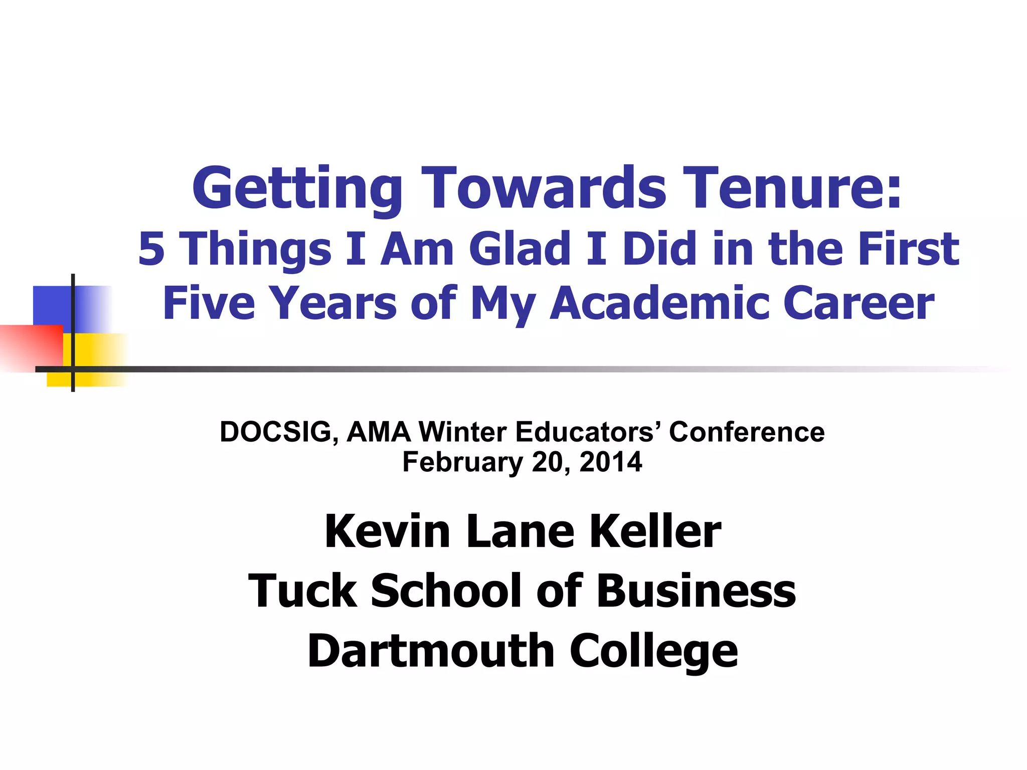 The document summarizes five things the author is glad he did in the first five years of his academic career to help achieve tenure: