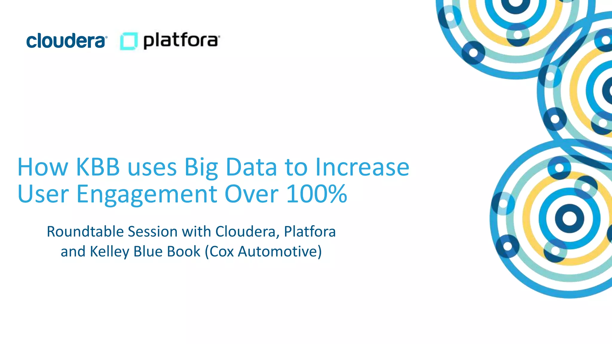 The document details a roundtable session involving Cloudera, Platfora, and Kelley Blue Book (KBB), focusing on how KBB utilizes big data to enhance user engagement and analytics. Key figures from the organizations share their backgrounds and insights on leveraging customer data to improve marketing efficiency, optimize ad spend, and create a more personalized customer experience. The session highlights the transition from legacy data approaches to modern, real-time analytical methods for comprehensive customer understanding.