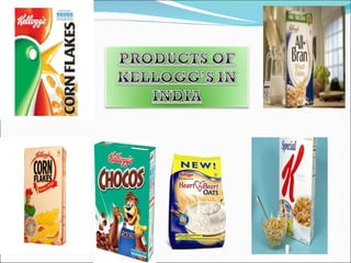 The document discusses Kellogg's, the world's leading cereal and convenience food producer. It was established in 1906 and produces products in 18 countries that are marketed in over 180 globally. In India, Kellogg's entered in 1994 but failed initially due to overconfidence, ignoring cultural aspects, misunderstanding consumer behavior and habits, and premium pricing. The document then covers various marketing and strategic analyses including PESTEL, marketing mix, SWOT, and market segmentation used by Kellogg's.