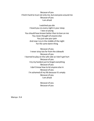 The song describes how past relationship mistakes and heartbreak have caused the singer to guard their heart and avoid intimacy. They learned from their partner's mistakes and will not allow themselves to experience the same misery. As a result of being hurt, the singer finds it difficult to trust others and stays guarded to avoid getting hurt again in the future.