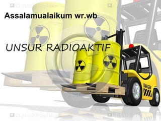 Dokumen ini membahas unsur radioaktif, pengembangan keradioaktifan, dan berbagai aplikasi serta dampaknya. Sejak penemuan sinar X dan gejala keradioaktifan oleh Becquerel, unsur seperti uranium dan radium memiliki manfaat penting di bidang medis, pertanian, dan industri, tetapi juga membawa risiko radiasi yang merugikan. Berbagai proses peluruhan dan transmutasi, serta radioisotop dalam kehidupan sehari-hari, juga dijelaskan dalam konteks penggunaannya dan potensi bahayanya.