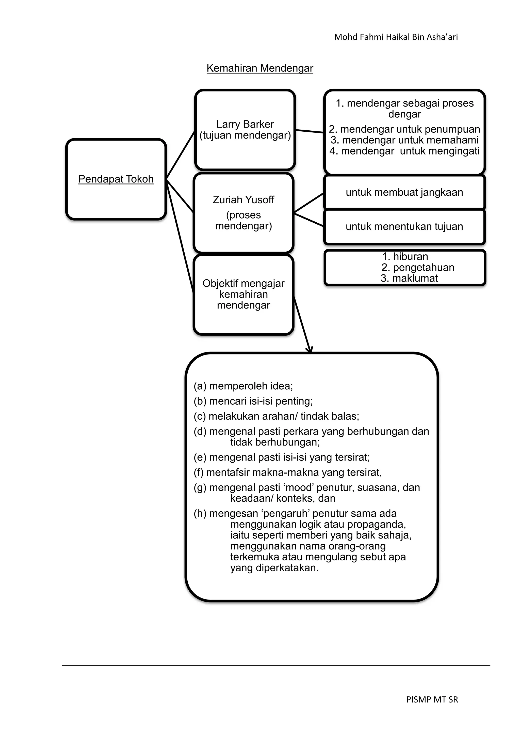 Dokumen tersebut membahas tentang kemahiran mendengar, termasuk proses mendengar, pendapat tokoh tentang tujuan mendengar, dan objektif mengajarkan kemahiran mendengar. Bentuk-bentuk kemahiran mendengar dijelaskan seperti secara aktif, pasif, bertelau-telau, dan lainnya. Proses mendengar juga dibahas dari penghasilan hingga penerimaan pesan.