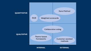 The document discusses methods for influencing organizations through understanding customer problems, motivating teams, and driving innovation. It emphasizes the importance of defining target customers, their pain points, and developing value propositions, while also implementing effective performance metrics to gauge success. Additionally, it outlines strategies for stakeholder management and collaboration to ensure successful product development and adoption.