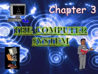 This document provides an overview of the six main elements of a computer system: hardware, software, peopleware, data/information, procedures, and communication. It focuses on describing the different types of computer hardware, including input devices like keyboards, mice, and scanners; processing hardware like the central processing unit and memory; storage hardware like hard disks, floppy disks, and optical disks; and output hardware like printers and displays. Key input devices summarized include keyboards, pointing devices, bar code readers, and biometric systems. Processing hardware is summarized as the CPU and main memory. Storage is summarized as primary memory (RAM) and secondary memory like magnetic tapes, disks, and optical disks.