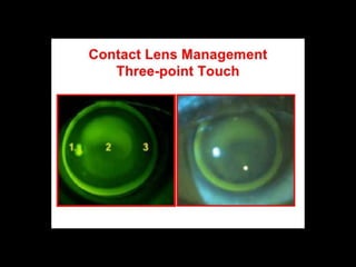 Keratoconus is a degenerative condition where the central cornea progressively thins and steepens, causing irregular astigmatism and vision changes. While the exact cause is unknown, risk factors include eye rubbing and genetic factors. Diagnosis is based on signs of corneal thinning, steepening, and irregularity seen on examination. Mild cases are managed with glasses or contact lenses, while more severe cases may require corneal collagen crosslinking or surgery.
