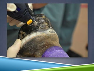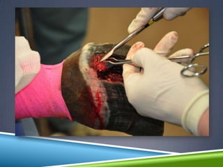 This document discusses three uncommon causes of foot lameness: canker, keratoma, and quittor.
