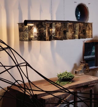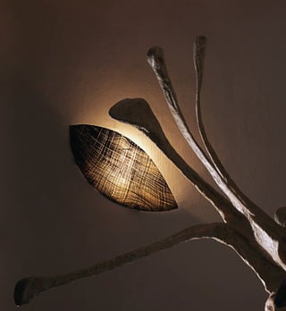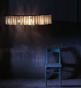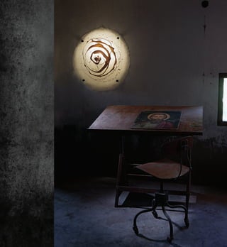 Keren Nechushtan is a contemporary artist known for creating functional artifacts, primarily light fixtures and Japanese blinds, characterized by a minimalistic design inspired by Japanese motifs. Her work utilizes a variety of synthetic and natural materials, which interact with light to create unique visual experiences. The document presents her latest collection, showcased in a sculpture studio that complements her work's aesthetic.