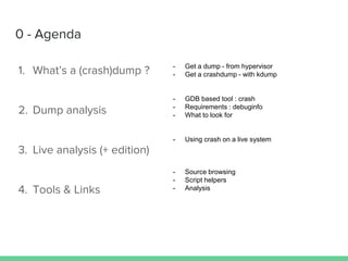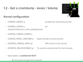 The document provides a technical overview of various commands and kernel panic scenarios in a virtualized environment using tools like virsh and ipmitool. It includes detailed crash information from specialized trace analysis and debugging of kernel operations, specifically addressing NMI occurrences and null pointer dereferences. Additionally, it outlines the states of processes and the system’s memory parameters during crashes for analysis and troubleshooting.