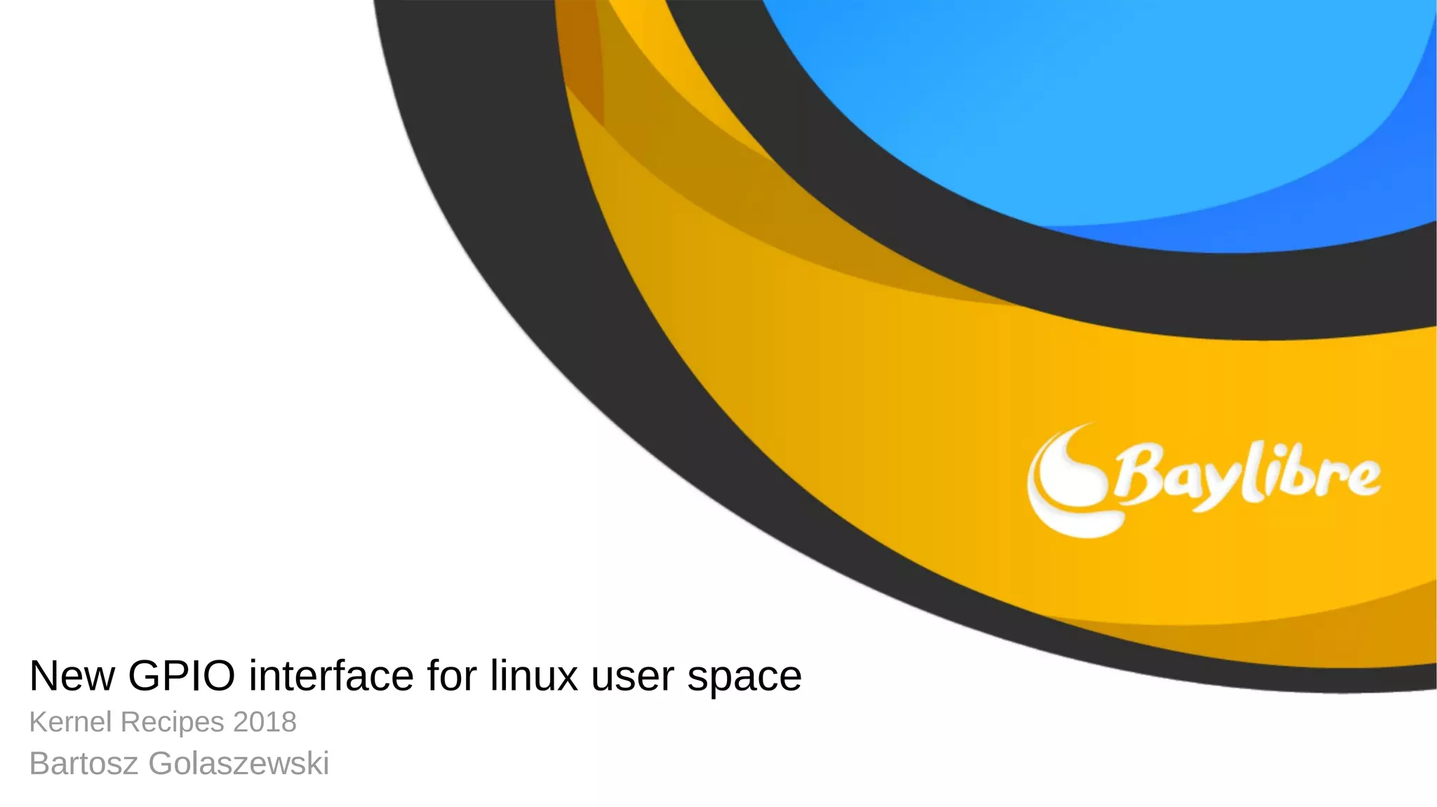 The document discusses a new GPIO interface for Linux user space, developed by BayLibre, aimed at enhancing general-purpose input/output functionalities. It provides an overview of GPIO operations, including character device APIs and the libgpiod C library with tools for managing GPIO lines and events. The document also highlights the future development plans for libgpiod, including features like Python 3 bindings and D-Bus support.