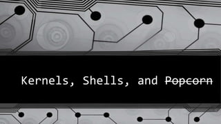The kernel resides in memory from boot until shutdown and is responsible for executing programs. Utilities reside on disk and are loaded into memory as needed by the shell. The shell is a command line interpreter that displays a prompt, executes commands by asking the kernel to run the program, and waits for the program to terminate before accepting new commands. Logging into the shell connects through a network to the Apache server using putty which performs password authentication before launching the login program.