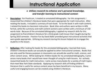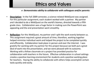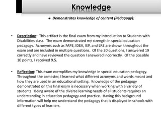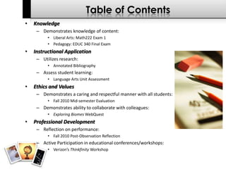Kerry O’Connor's education portfolio outlines his pedagogical knowledge and effective teaching practices across various subjects, particularly in mathematics and special education. It includes reflections on assessments, lesson planning, collaboration with colleagues, and participation in professional development, demonstrating his commitment to continuous improvement and student engagement. The portfolio emphasizes the importance of creating a supportive learning environment and the value of research in informing instructional practices.