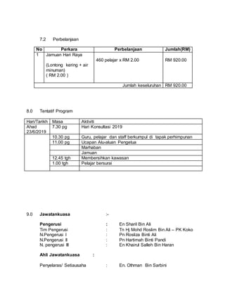 Kertas kerja ini membincangkan taklimat tentang pentaksiran berasaskan sekolah (PBS), pentaksiran bilik darjah (PBD), dan peperiksaan mata pelajaran elektif (MPEI) yang dianjurkan oleh SMK Bandar Easter pada 20 Februari 2020. Matlamatnya adalah untuk meningkatkan kefahaman guru mengenai prosedur ini dan memudahkan pelaksanaan. Program ini merangkumi sesi taklimat, soal jawab, serta pengurusan jamuan dan pelbagai aktiviti lain yang melibatkan jawatankuasa dan pelajar.