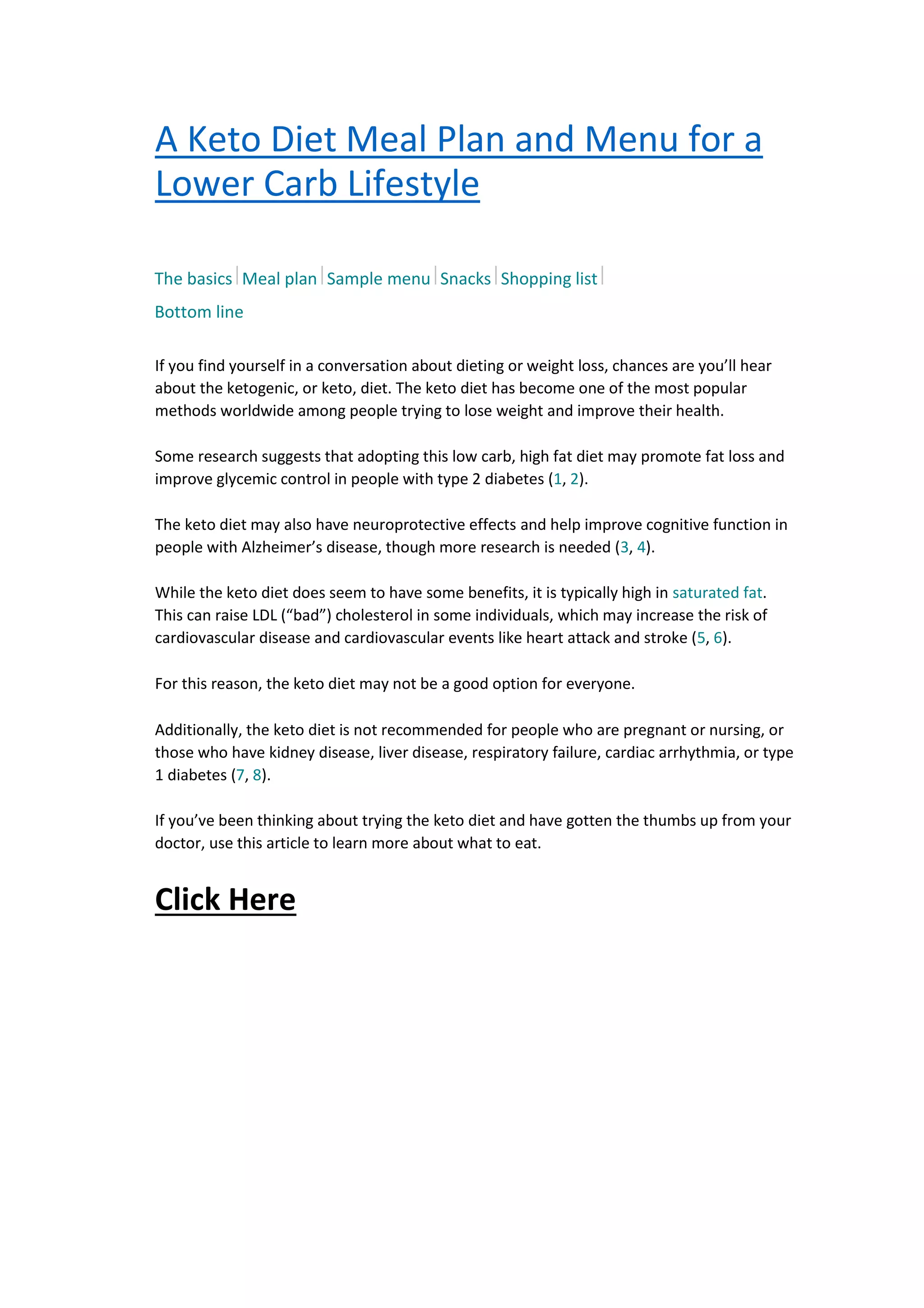 The ketogenic diet emphasizes a very low carbohydrate intake (5–10% of calories) and high fat consumption (60–80% of total calories), promoting fat loss and potential health benefits but may not be suitable for everyone, particularly those with certain health conditions. Meal plans should focus on keto-friendly foods like meats, eggs, full-fat dairy, and low-carb vegetables, while avoiding high-carb items such as grains, sugars, and starchy vegetables. It's advisable to consult a healthcare professional before starting the diet to ensure safety and effectiveness.