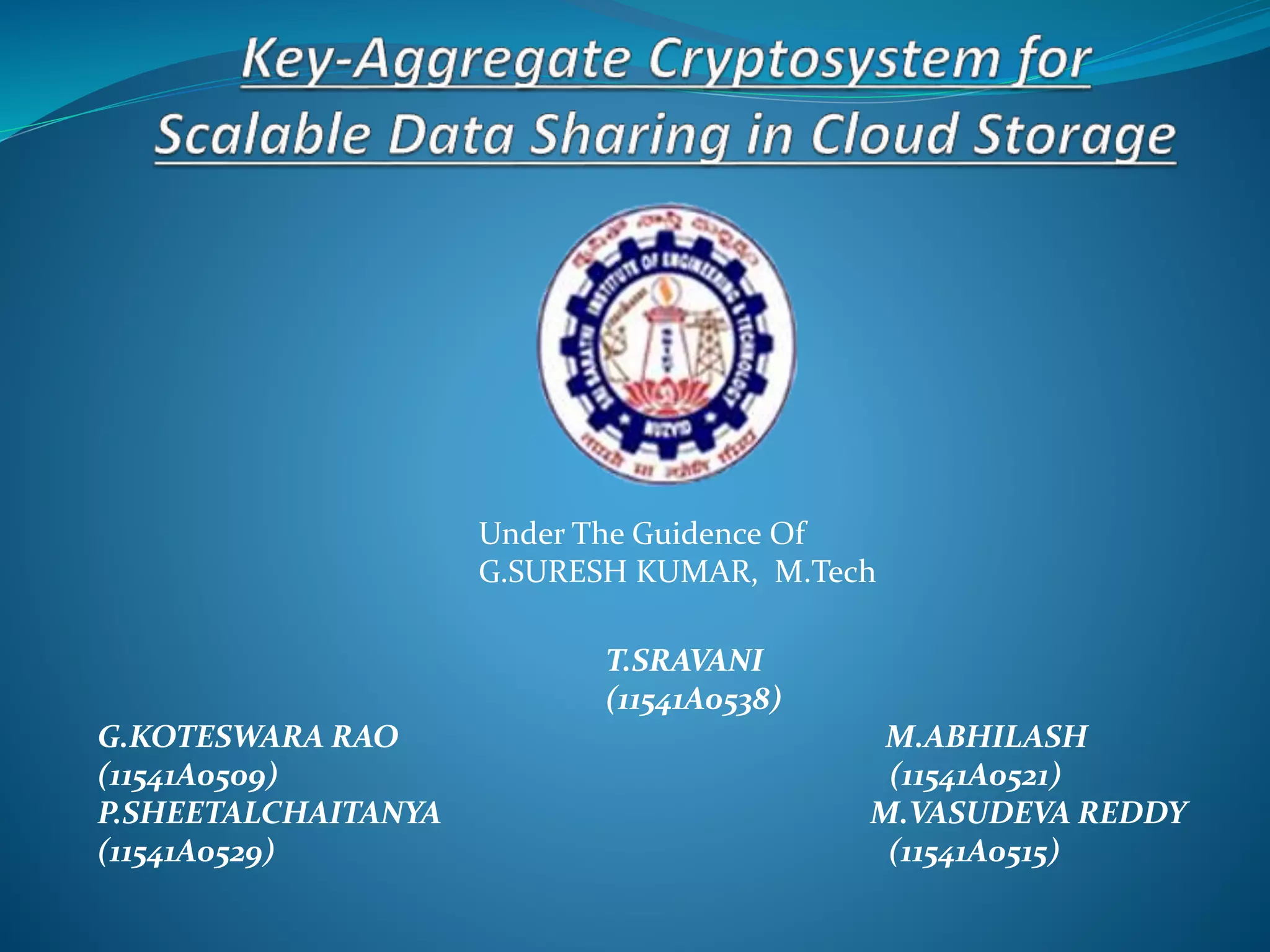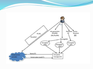 This document presents a proposed system for secure and flexible data sharing in cloud storage. It describes using new public-key cryptosystems that can aggregate any set of secret keys into a constant-size ciphertext. This allows flexible sharing of encrypted data through an aggregate key that decrypts multiple ciphertexts without increasing in size. The system architecture includes setup, encryption, key generation, and decryption phases. The proposed system aims to address limitations in existing approaches regarding key sizes and flexibility of data access delegation.