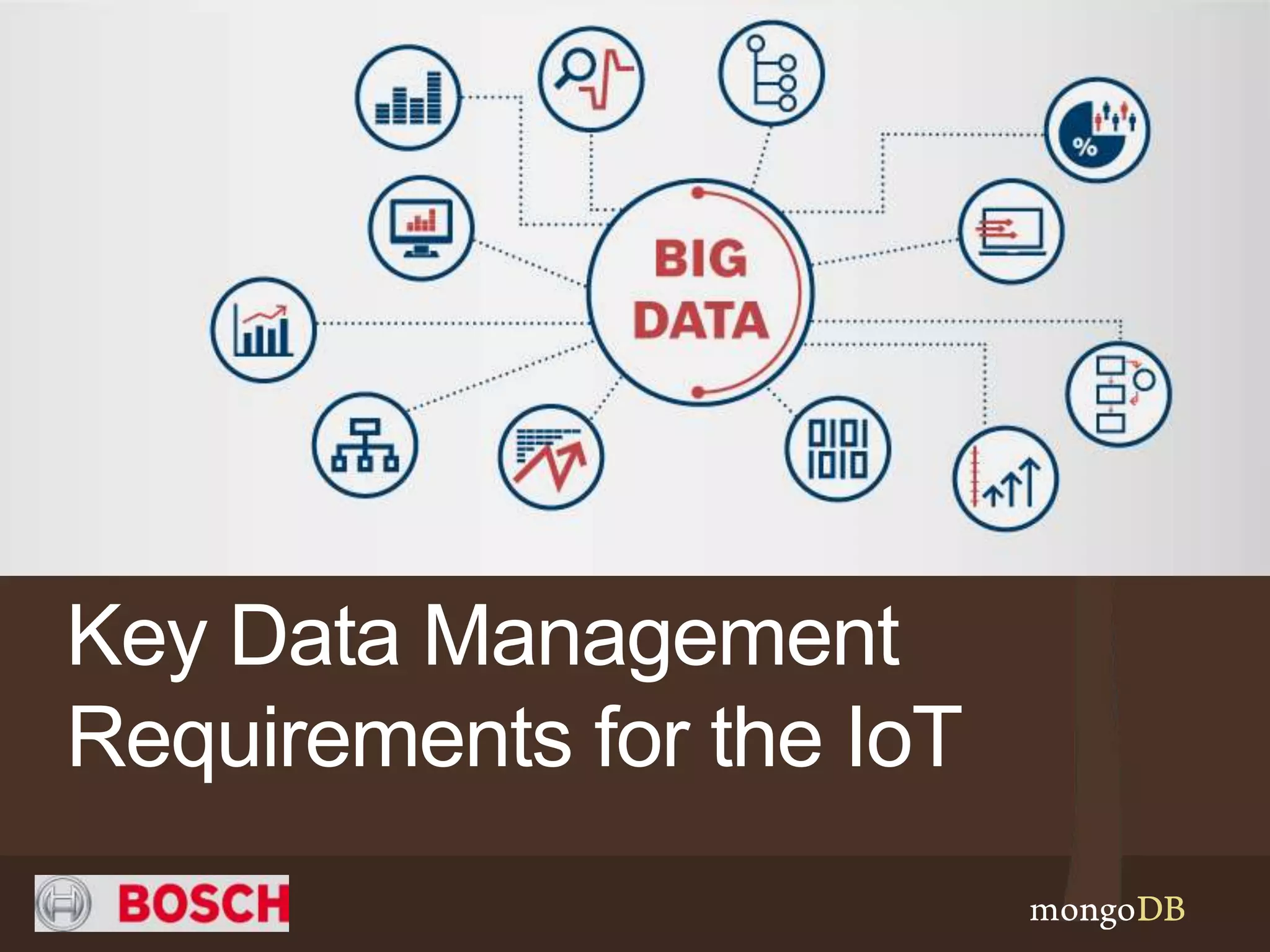 The document discusses key data management requirements for Internet of Things (IoT) applications. It notes that IoT will generate massive amounts of structured and unstructured data from a large number of connected devices and sensors. This data must be managed in a way that allows for rich applications, a unified view of data, real-time operational insights, business agility, and continuous innovation. It argues that traditional relational databases may not be well-suited for IoT data management and that NoSQL databases can provide scalability, flexibility, analytics and a unified view of data from multiple sources.