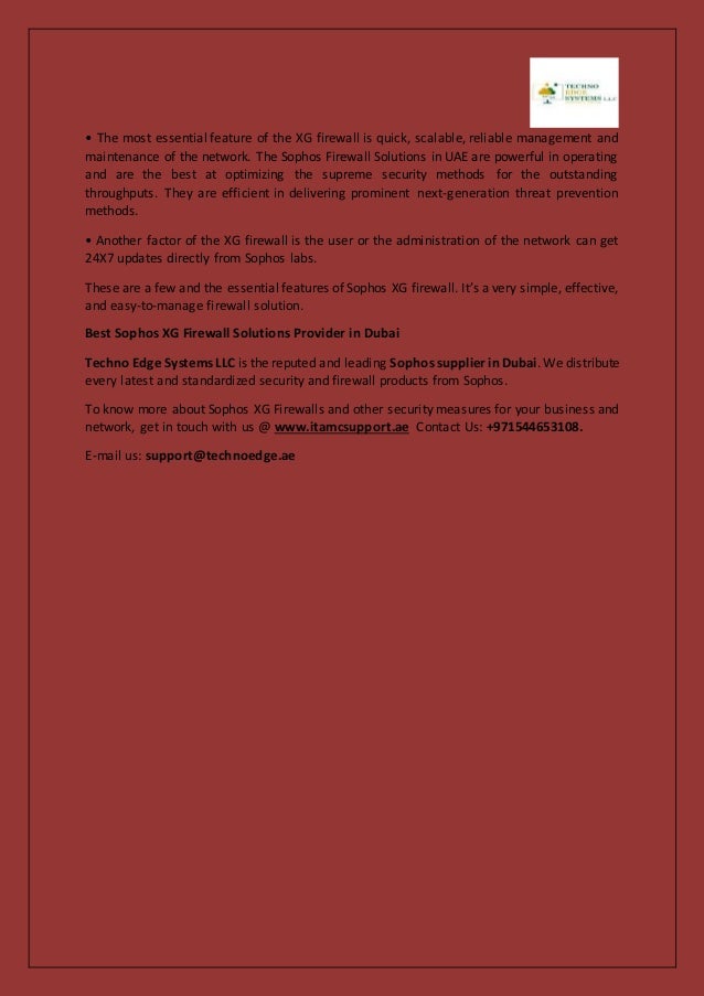 Sophos XG Firewall is a versatile security solution offering next-generation features for network protection against cyber threats, with easy installation and management. Techno Edge Systems LLC is the primary distributor of these firewalls in Dubai, providing advanced security measures and real-time updates. The firewall integrates multi-layered security methods and centralized traffic monitoring to safeguard business networks effectively.
