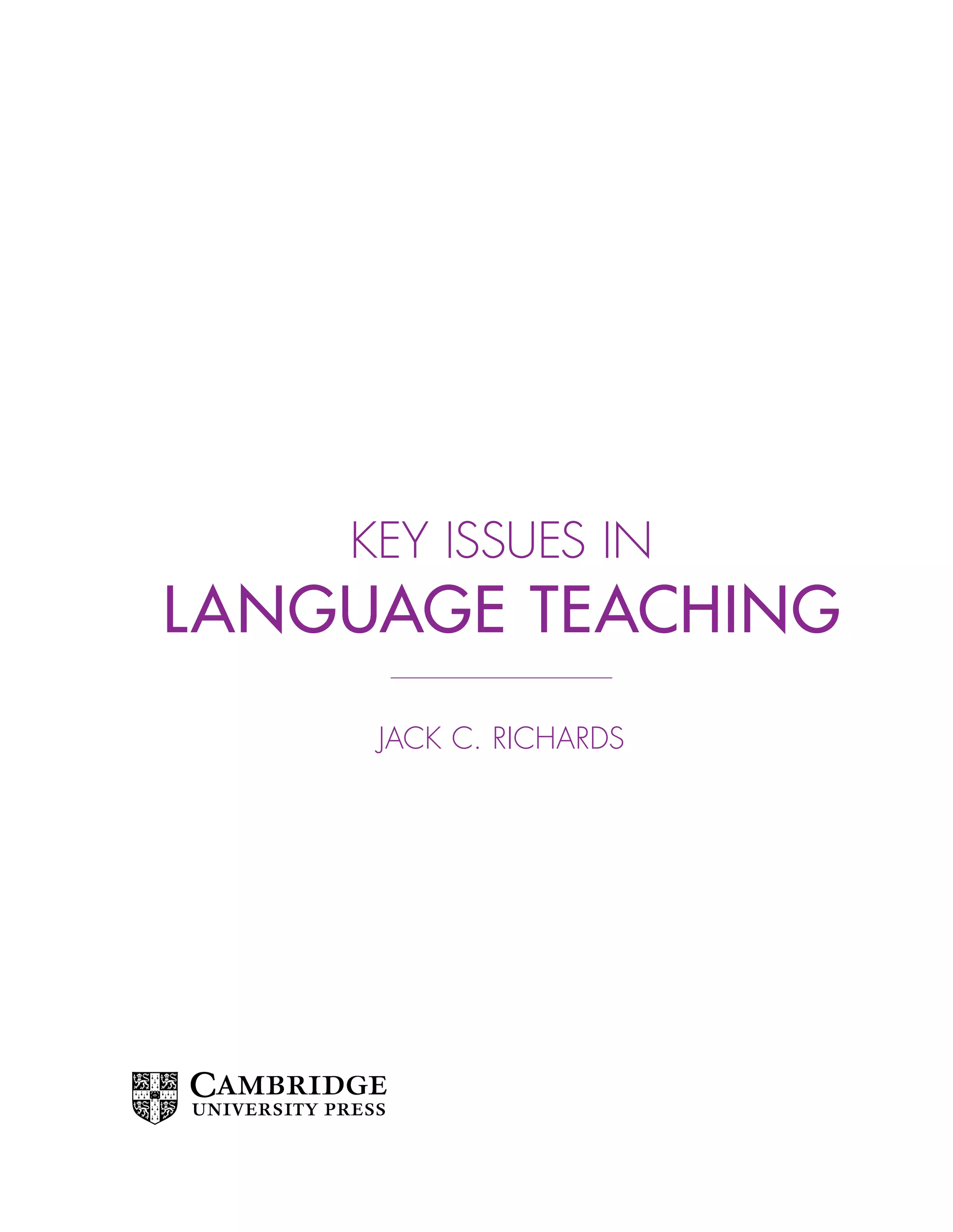 Key Issues in Language Teaching by Jack C. Richards provides a comprehensive overview of English language teaching, integrating theory, research, and practical applications. The book covers essential topics such as second language learning, teaching methods, classroom management, and technology, making it a valuable resource for both student-teachers and experienced educators. It also features discussion questions and activities to enhance the relevance of theory to real-world classroom scenarios.