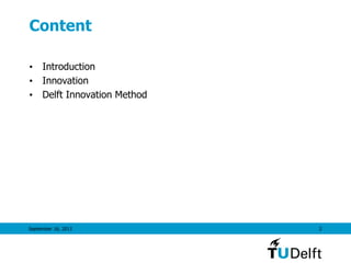 3) Empirical evidence from over 2000 cases since 1976 shows the effectiveness of the Delft Innovation Method in industrial innovation projects. The method remains relevant as each innovation causes the need for new innovation cycles.