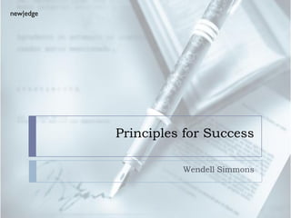 Wendell Simmons discusses principles for business development, working with people, and lessons learned. He recommends leveraging personal networks and participating in industry events to develop new business. When engaging clients, it is important to understand their needs, establish common goals, and develop buy-in. Working in teams requires clarifying roles, setting goals, agreeing on a work process, and ensuring transparency to minimize conflicts. Interacting with senior leaders involves establishing clear communication rhythms, using roadmaps, providing consistency and metrics to guide decisions. Overall, context, managing expectations, focusing on priorities, and empowering individuals are keys to success.
