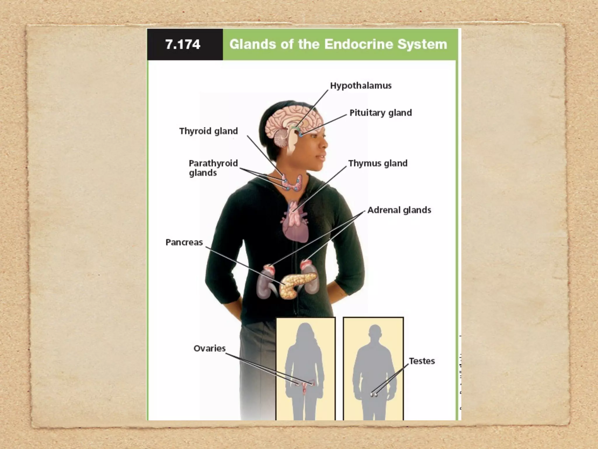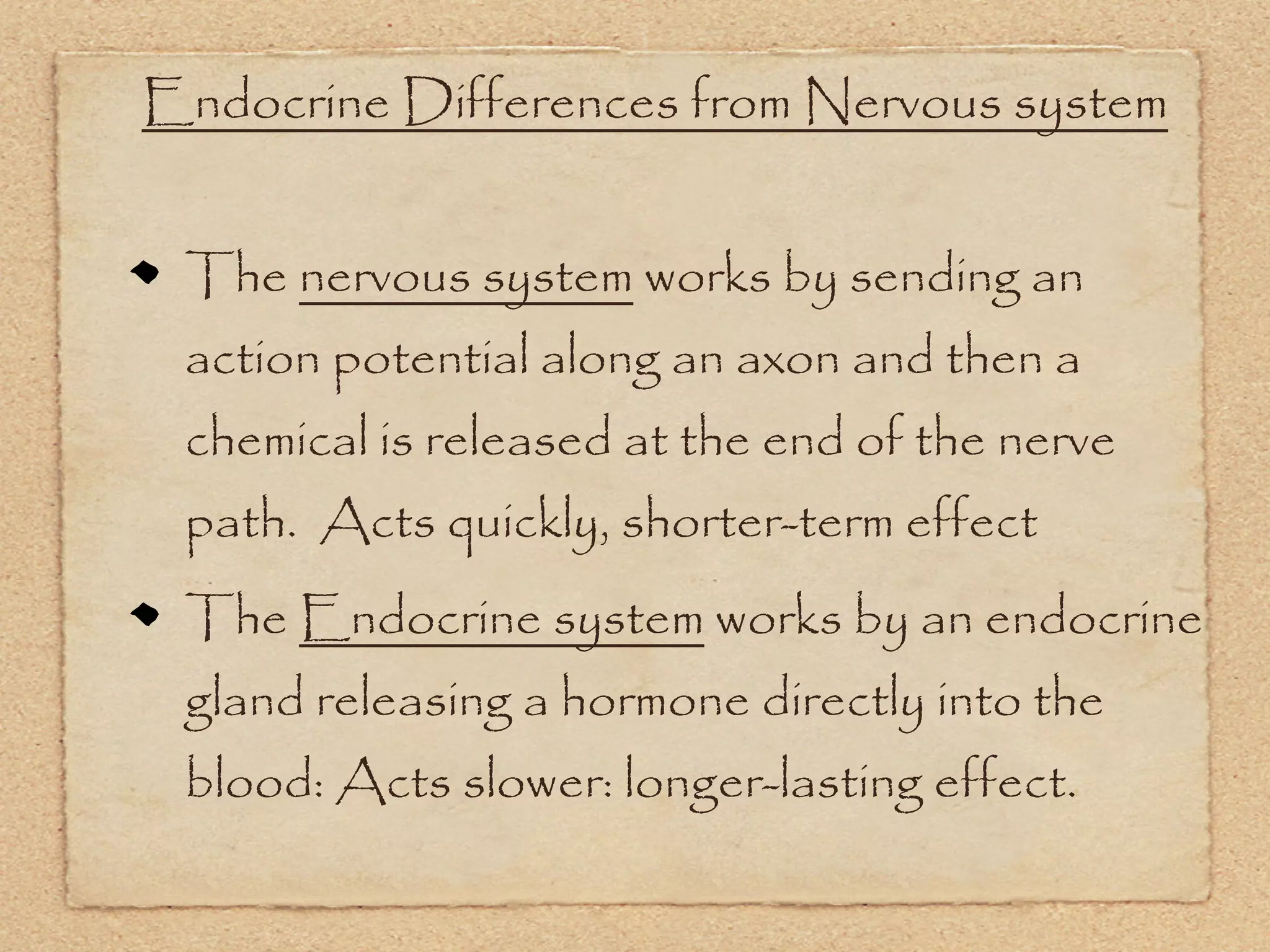 The endocrine system regulates metabolism, growth, development, emotions, and reproduction through hormones released into the bloodstream from endocrine glands. It acts more slowly than the nervous system but has longer-lasting effects. Some key endocrine glands include the hypothalamus, pituitary, thyroid, adrenals, ovaries, and testes. Important hormones include insulin, cortisol, testosterone, estrogen, progesterone, and thyroxine which regulate processes like blood sugar, stress response, and metabolism. The hypothalamus and pituitary gland work together to control hormone release from other glands through negative feedback loops.