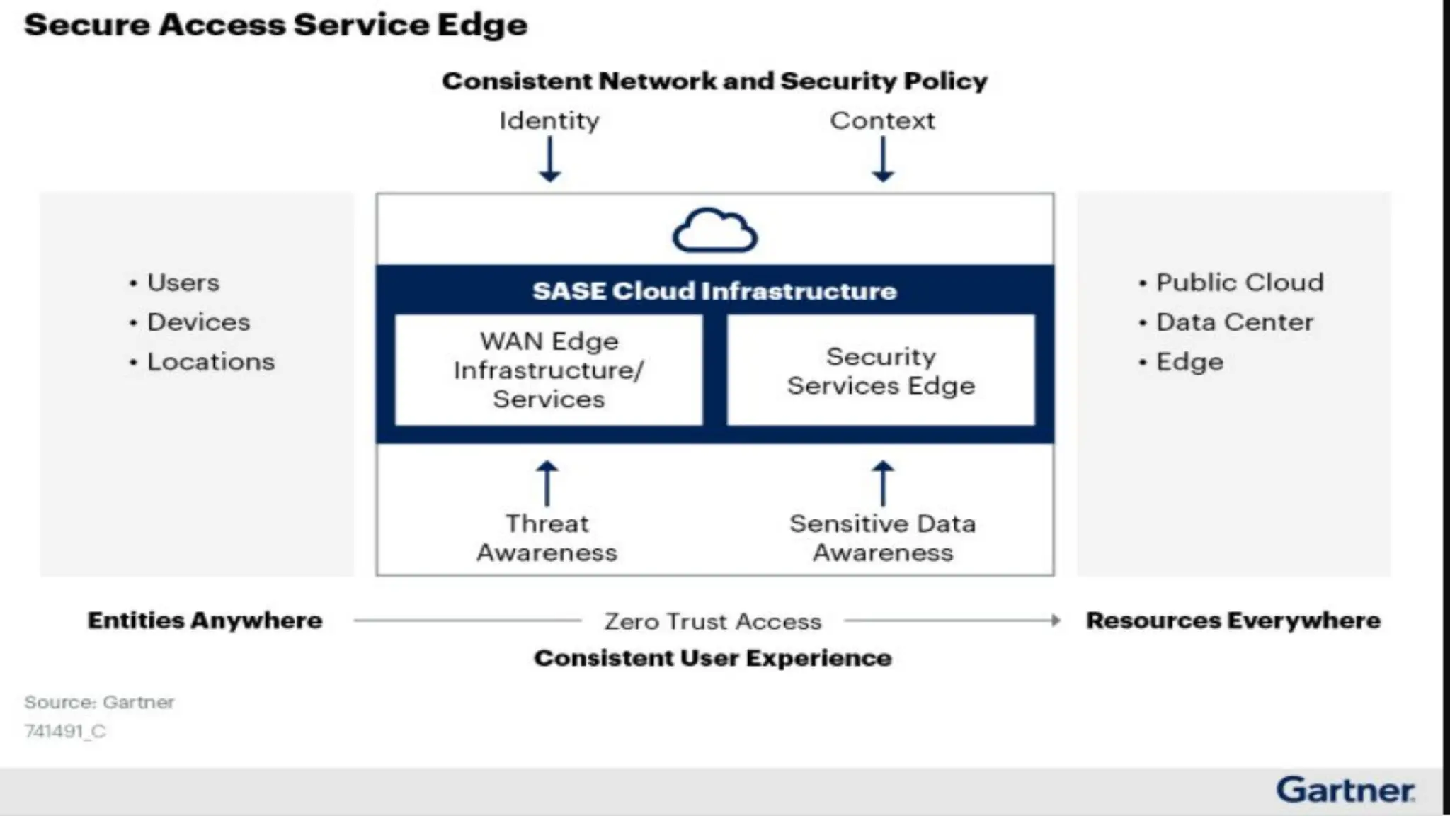 The document discusses the concept of Secure Access Service Edge (SASE), which combines SD-WAN and security in cloud environments to address the complexities of modern network and security needs. It outlines the benefits of SASE, including improved user experience, enhanced security compliance, and cost savings through simplified management. Additionally, the document references Gartner's framework for SASE and its impact on traditional security models.