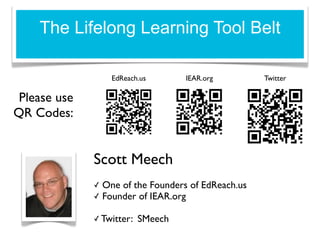 1. The document discusses lifelong learning and developing a lifelong learning tool belt. It provides numerous online resources and tools for learning including websites, conferences, and social media platforms.