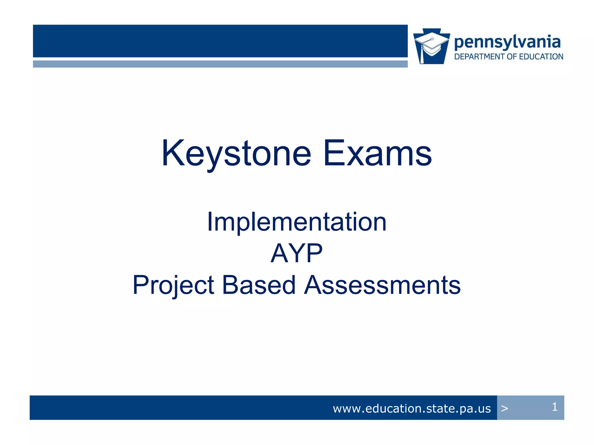The document outlines the implementation of Keystone Exams and Project-Based Assessments (PBA) for Pennsylvania graduation requirements, emphasizing student proficiency in key subjects and the process for those who do not pass. It details the criteria for PBA eligibility, including attendance and instruction participation, as well as the roles of educators in administering these assessments. Additionally, it provides insights into district responsibilities and emergency waiver procedures for graduation requirements.