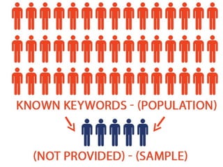 The document discusses challenges and strategies for conducting keyword research in an environment where a significant portion of organic keyword traffic data is not visible due to secure search. It emphasizes the importance of leveraging tools like Webmaster Tools and using content to guide keyword research while encouraging the segmentation of keywords for better data clarity. Key takeaways include focusing on targeted keywords and implementing best practices for more accurate data sampling and analysis.
