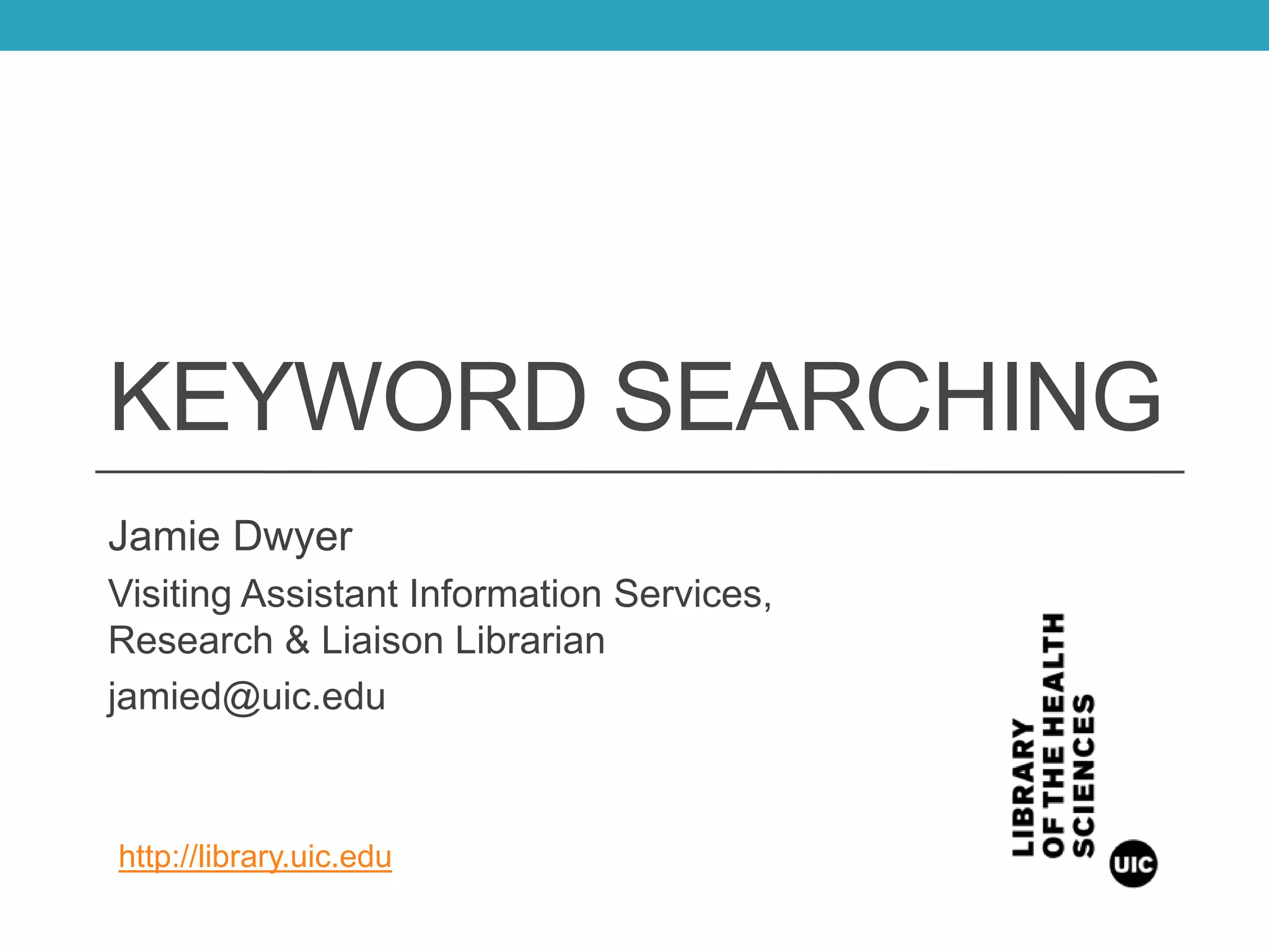 The document provides guidance on effectively searching research databases, using the example of a question about dietary patterns and lung cancer. It emphasizes the importance of identifying key concepts and keywords rather than searching entire questions, and suggests using synonyms and Boolean operators to refine search results. The document also offers various strategies for combining search terms to improve the relevance and quantity of articles retrieved.