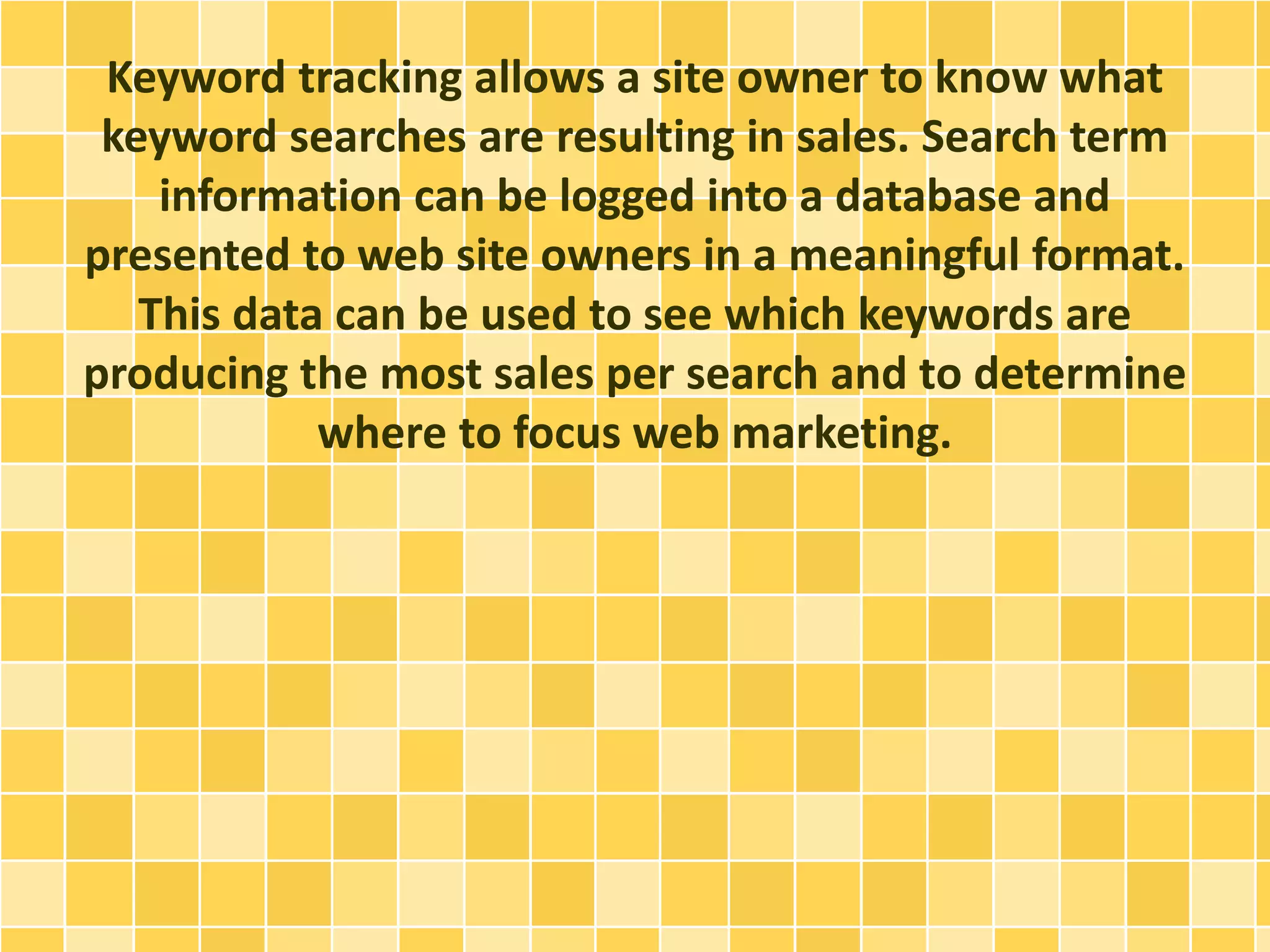 Keyword tracking allows website owners to see which keywords are generating the most sales from search results. This data can be used to determine where to focus marketing efforts. Tracking keywords through to sales conversions allows owners to calculate the return on investment for different keywords and search engines. It provides valuable insights for optimizing marketing spending.