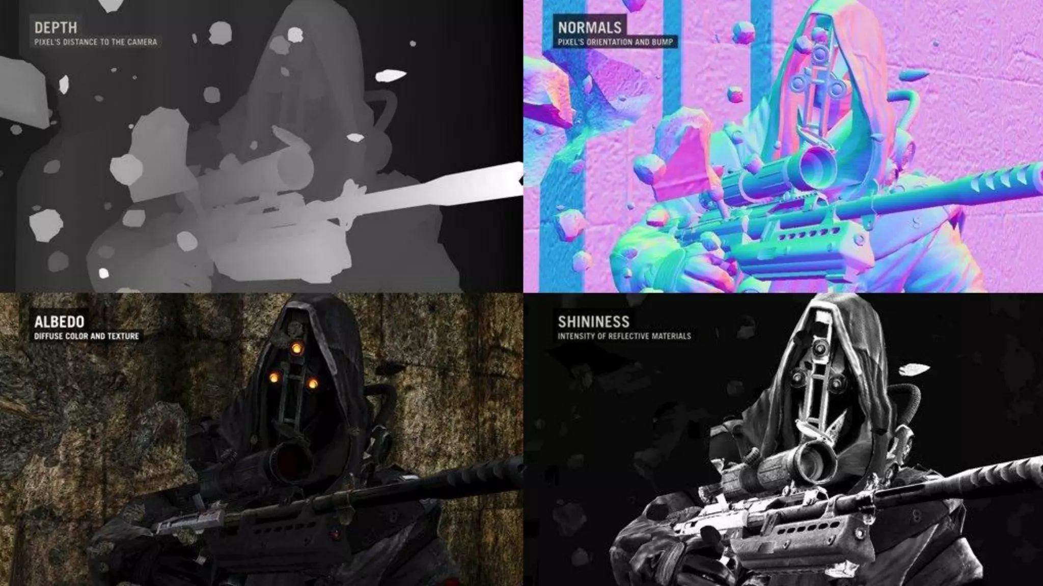 – 각 픽셀에서 보이는 surface geometry에 대한