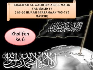 Khalifah Al-Walid bin Abdul Malik, lahir pada tahun 50 Hijrah (672 M), diangkat sebagai khalifah ke-6 pada tahun 86 Hijrah (705 M) pada usia 36 tahun. Ia memerintah hingga wafat pada bulan Jamadi akhir tahun 96 Hijrah (25 Februari 715 M) di usia 46 tahun. Riwayat hidup beliau menunjukkan perjalanan penting dalam sejarah Islam.