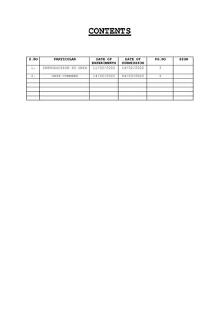 Unix is an operating system with features like portability, multi-user access, and multi-tasking. It uses a hierarchical file structure and has over 200 utility programs. The three main components of Unix architecture are application programs, the kernel, and the shell. The kernel interfaces with hardware and manages tasks like memory, processes, and file management. The shell acts as an interface between the user and kernel and uses standard syntax for commands. Files and directories are organized in a tree structure in the file system.