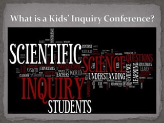 This document discusses plans to transition from a traditional science fair format to a Kids' Inquiry Conference (KIC) model at a school district. It provides an overview of the key differences between a traditional science fair and KIC approach. It then outlines the steps needed to plan and implement a KIC, including establishing timelines, determining logistics, developing materials and ensuring support for student presentations through various mediums. The document emphasizes that a KIC aims to foster a more authentic, non-competitive learning environment where students can become experts on their topics and strengthen presentation skills.