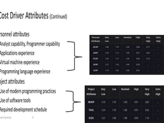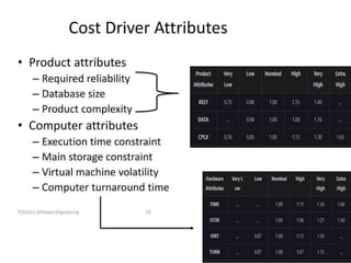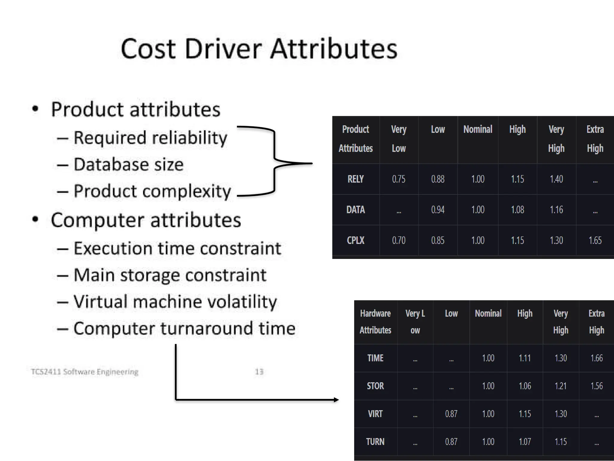 Product Attributes RELY (Required Reliability) Importance of software reliability. Very Low (0.75), Low (0.88), Nominal (1.00),