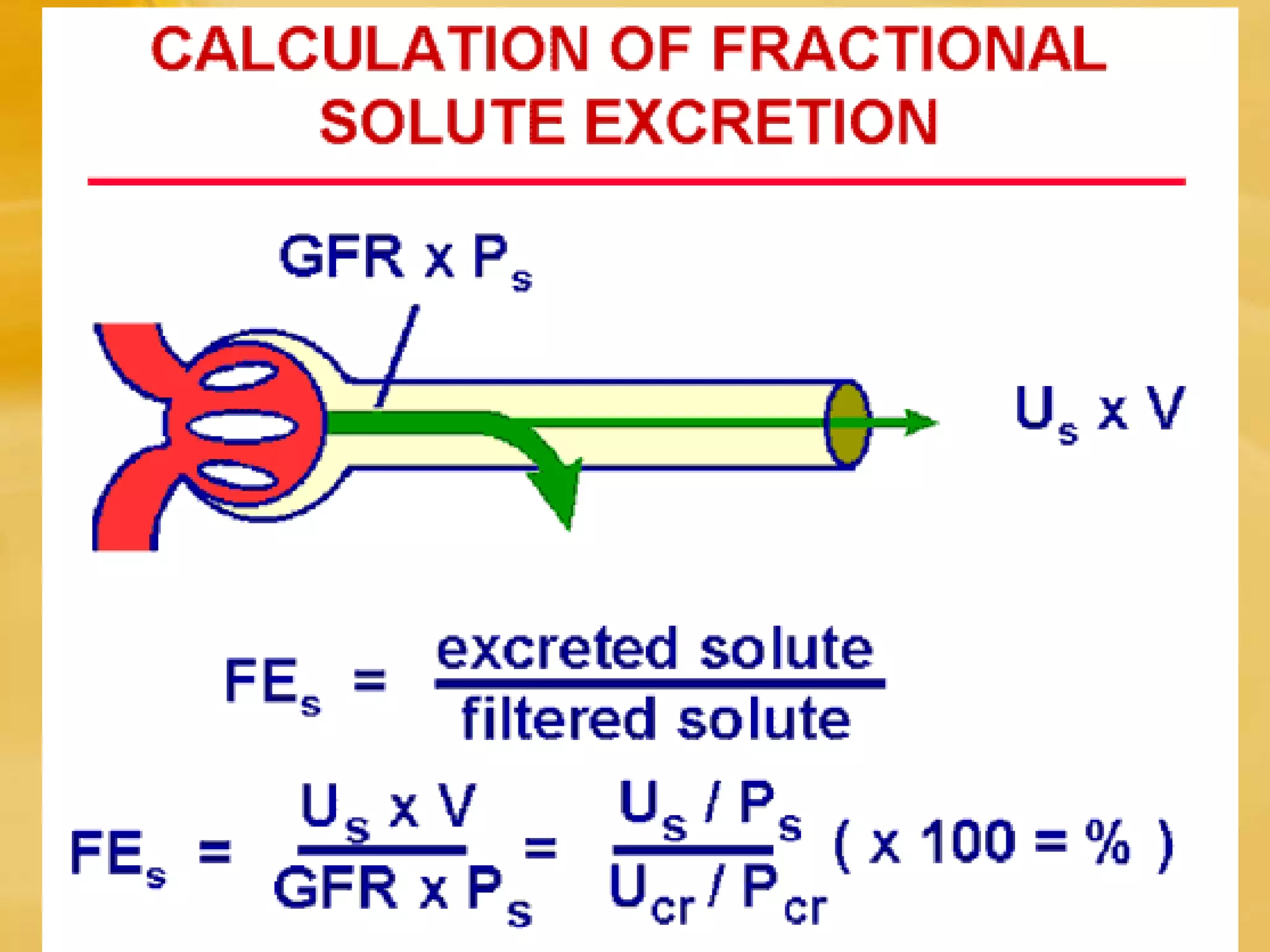 Renal function tests can help screen and monitor patients for kidney disease. The creatinine and BUN can be elevated by factors other than kidney disease, such as increased protein intake or muscle breakdown. To determine if acute renal failure is prerenal or renal (ATN), fractional excretion of sodium and urea are used, with prerenal azotemia having FENa <1% and FEUrea <35%. Estimating glomerular filtration rate (GFR) stages chronic kidney disease.