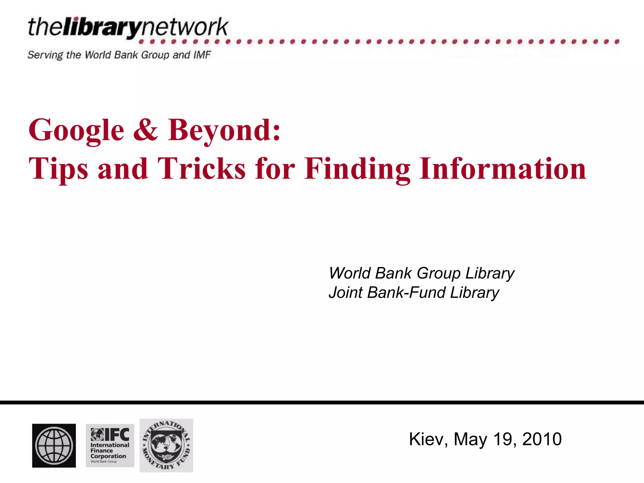 The document provides tips and tricks for effective Google searching, including the use of advanced search features and techniques for limiting search results. It covers specific methods such as utilizing quotation marks, asterisks, and search operators to refine queries, as well as information on Google Books and Google Scholar. Additionally, it introduces resources like eldis.org and tinyurl.com to further enhance search capabilities and manage URLs.