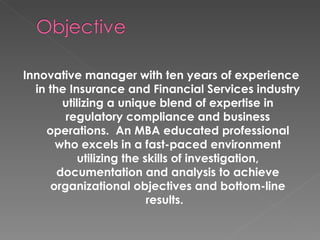 Jeannine Kimerer has over 10 years of experience in regulatory compliance and business operations in the insurance and financial services industries. She has a proven track record of developing and implementing compliance programs, policies, and procedures. She also excels at analyzing business activities, investigating issues, and identifying problems and improvements. Kimerer has strong leadership, communication, and problem-solving skills.